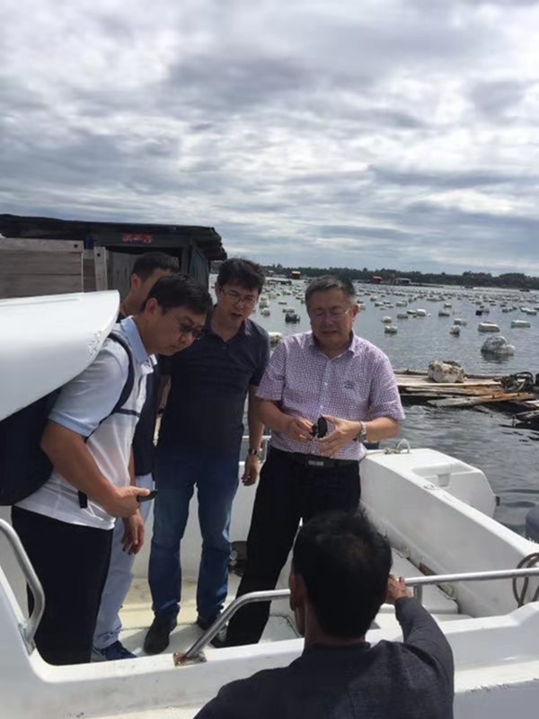 2019年8月21日上午,茅云翔副董事长陪同包振民院士一行到陵水黎安港实地考察当地水产养殖情况。包振民院士向当地渔民详细了解麒麟菜、翡翠贻贝养殖生产发展现状及存在的问题,并对黎安泄湖发展海藻、贝类养殖,以及开发生态修复和发展休闲渔业等方面提出建议。考察期间,包振民院士还向海南省南海鱼类种苗协会蔡春有会长了解海水鱼类种苗产业发展现状,并就海南发展水产种业等问题进行了深入交流。